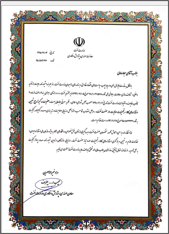 گواهی ثبت اختراع شیر ایمنی دو طرفه صنعت نفت و گاز